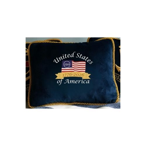 Celebrate 250 years of America with this Premium Commemorative Velvet Pillow featuring the United States Semiquincentennial embroidery.