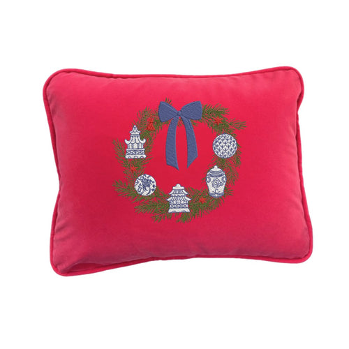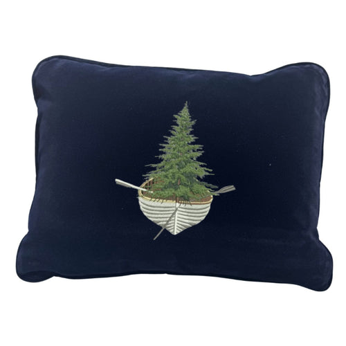 Nautical Christmas Pillow – Embroidered Holiday Rowboat Pillow with Tree | Annapolis Pillow Co.